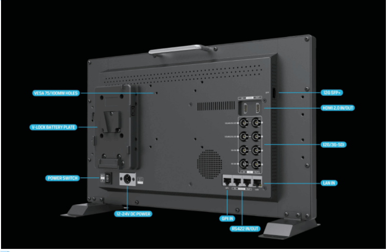12G-SDI*2, 3G-SDI*2, HDMI 2.0, RS422, Earphone jack |
