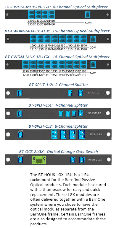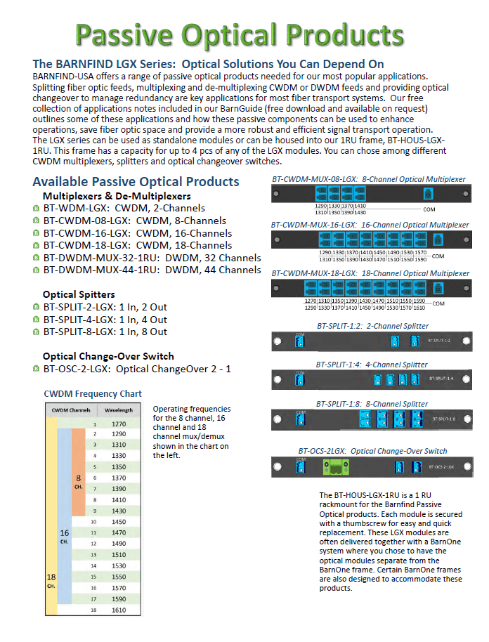 - Powerful and simple upgrade path; Industry unique double CWDM capacity- HiLo System using existing CWDM infrastructure (unique Barnfind feature).